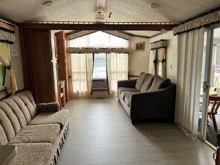 | Accommodations: Sleeps 6. Master bedroom has a queen bed, living room and front den has 2 pullout couches. Has a deck and hard awning. Air Conditioned. | |